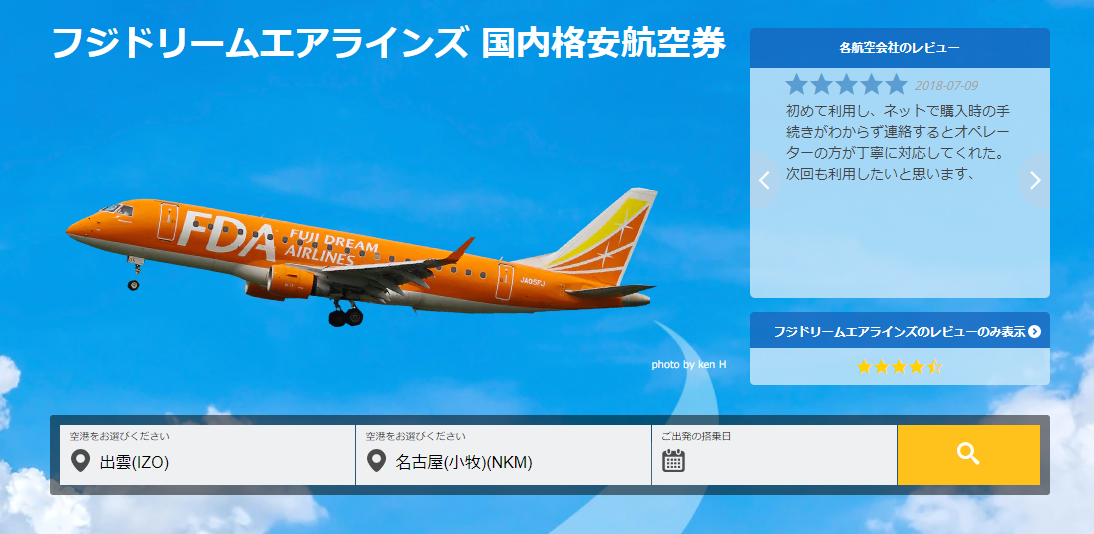 フジドリームエアラインズ(FDA)をお得に予約するなら「スカイチケット」がおすすめ!